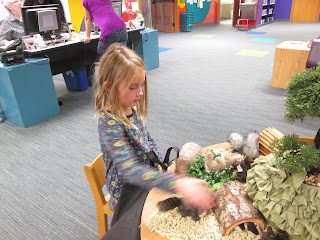 After a story and a tour, children checked out books, and then got a chance to play with some of the things in the children's section, or just look at the fish. There is a lot to do, and we were not ready to leave. Another trip soon.